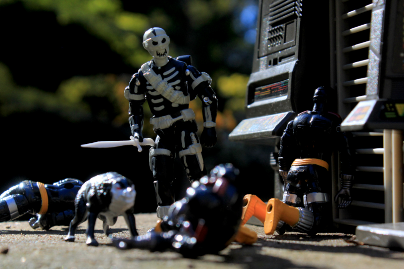 Description: I forgot to buy a Toxo-Zombie so I had to improvise a bit. So instead, Snake Eyes put on his skull pajamas and went whacking some BATs, because you can't have Halloween without BATs.