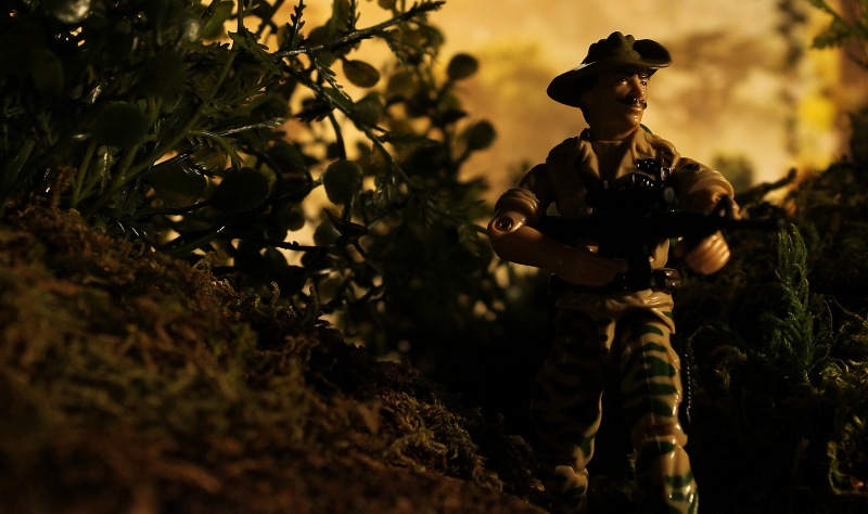 One of those projects was a modular jungle diorama that I've put together over the winter. I've had this idea in my head for a few years now, but I hadn't attempted it until now. It's still a work in progress that can be expanded on, but here's a test shot featuring Recondo.